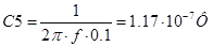 Ёмкость фильтра из условия, что сопротивление источника питания равно 0.1 Ом: