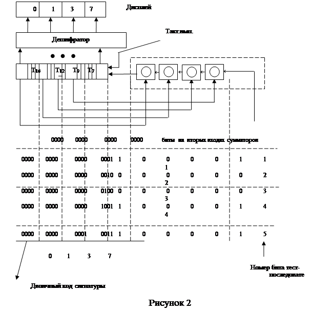 Принцип формирования сигнатуры из тест-последовательности с помощью сигнатурного анализатора поясняет рисунок 2.