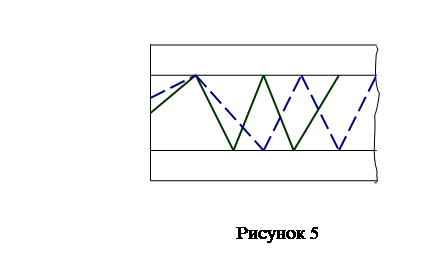 Модовая дисперсия возникает вследствие того, что каждая мода проходит разный путь по ОВ, как показано на рисунке 5, а следовательно имеет различную скорость вдоль оси волокна.