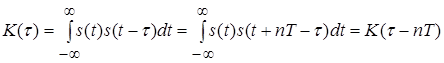 Автокореляційна функція періодичного сигналу сама є періодичною функцією з тим самим періодом (рис. 5а).