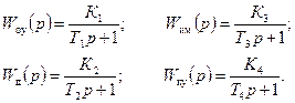 Передаточные функции объекта управления (ОУ), исполнительного механизма (ИМ), датчика (Д) и корректирующего устройства (КУ):