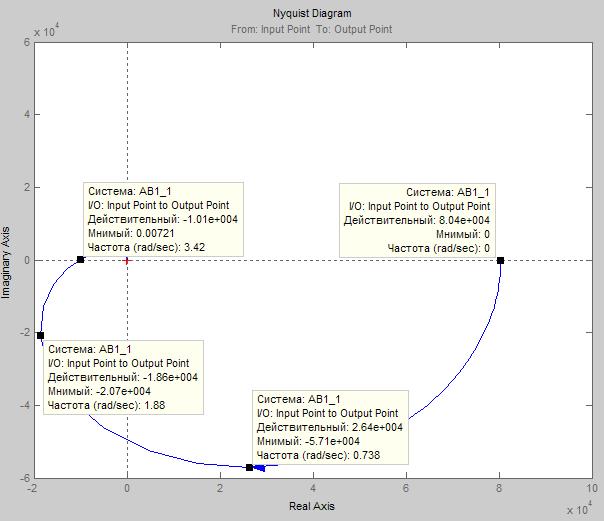 Рисунок 2. АФЧХ разомкнутой САУ.