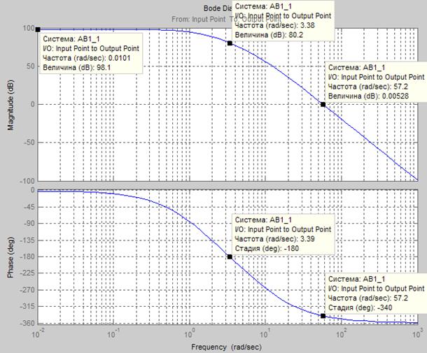 Рисунок 3. ЛЧХ разомкнутой САУ.