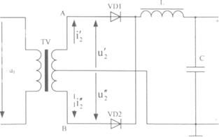 Рис.2.1. Двухполупериодная схема выпрямления с выводом средней точки