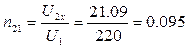 Производится по исходным данным: U1 =220 В; fc =50Гц; U2 =21,09 В; I2 =0,71 А.