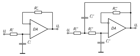 Схеми фільтрів першого та другого порядків наведені на рис. 2.2.