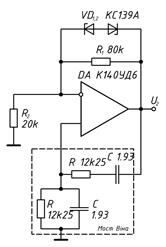 В якості операційного підсилювача можна взяти модель К140УД6.