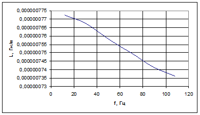 | L, Гн/м | 7,72349E‑07 | 7,67474E‑07 | 7,58E‑07 | 7,5E‑07 | 7,41E‑07 | 7,36E‑07 |