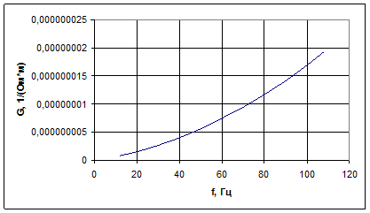 | G, 1/(Ом/м) | 1,2194E‑06 | 3,841E‑06 | 1,52E‑05 | 5,49E‑05 | 0,000244 | 0,001097 | 0,005792 |