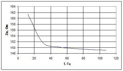 | Zв, Ом | 161,4652542 | 151,7064458 | 150,1815 | 149,5849 | 149,3032 | 149,1028 |