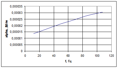 Рис. 12. Зависимость коэффициента затухания от частоты