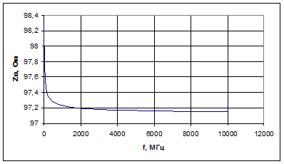 | Zв, Ом | 98,2611825 | 97,7776212 | 97,47767 | 97,32378 | 97,22858 | 97,17982 | 97,14968 |