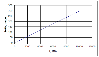 Рис. 6. Зависимость коэффициента фазы от частоты