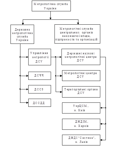 Метрологічними центрами ДСУ є ДНДІ метрології (ДНДІМ), м. Харків, ДНДІ “Система”, м. Львів і УкрЦСМС, м. Київ. Їхніми головними завданнями є: виконання науково-дослідних робіт, пов’язаних зі створенням, удосконаленням, зберіганням і застосуванням державних еталонів, створенням систем передавання розмірів одиниць вимірювань, розробкою нормативних документів з метрології, а також здійснення державного метрологічного контролю.