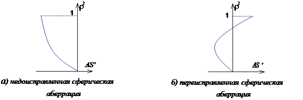 Однако в случае сферической аберрации 3 и 5 порядков может быть и так, как показано на рис.6.: а) – аберрация «недоисправлена», б) – аберрация «переисправлена».