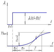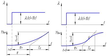 Характерной особенностью динамических свойств многоемкостных объектов является то, что после нанесения воздействия не происходит заметного изменения регулируемого параметра (Рис. 5). Если у одноемкостных объектов начальная скорость изменения параметра является наибольшей, то у многоемкостных - скорость отклонения регулируемой величины после воздействия начинает постепенно возрастать от нуля и достигает своей наибольшей величины лишь спустя некоторое время. Поэтому у многоемкостных объектов по сравнению с одноемкостными отклонение параметров на выходе ОР при прочих одинаковых условиях отстает во времени. Это отставание, вызванное наличием нескольких емкостей, называется переходным или емкостным запаздыванием. Его величина