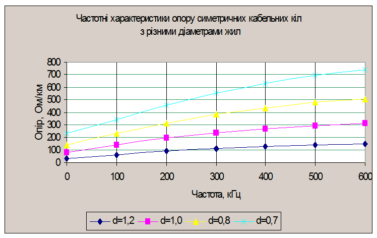 Расcчитать: Емкость;Проводимость изоляции на максимальной частоте;Затухание кабеля на максимальной частоте;Сопротивление кабеля на максимальной частоте;Диаметр жилы без изоляции;Расстояние между центрами жил и толщину изоляции;Построить графики и определить первичные и вторичные параметры передачи на частотах: 0;