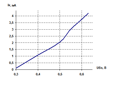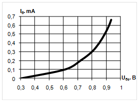 | Uбэ, В | 0.3 | 0.4 | 0.5 | 0.55 | 0.61 | 0,63 |