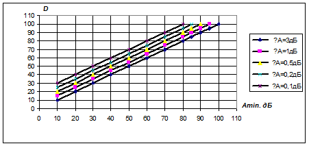 По заданным данным ΔА и Аmin определим вспомогательную функцию D (Рис 9)
