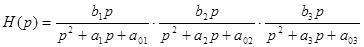 Запишем передаточную функцию ПФ в виде произведения трех сомножителей второго порядка