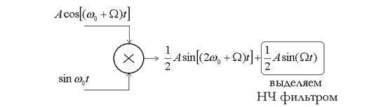 - но фаза нижней боковой полосы сдвинута (по отношению к АМ) на 180 градусов - как следствие, биения возникают не в амплитуде, а в фазе сигнала