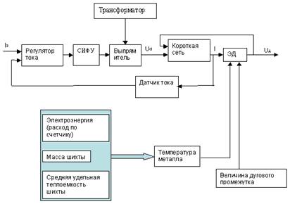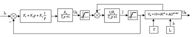Рис. 3 Структурная схема системы регулирования тока с учетом характеристик дуги
