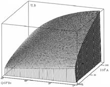 Многомерные зависимости параметров дуги постоянного тока от введенной энергии Q и длины дуги l , приведенные на рис. 2 б, в, г иллюстрируют качественные и количественные изменения напряжения на дуге при изменении технологического режима. В частности, при увеличении среднемассовой температуры шихты напряжение на дуге постепенно уменьшается. Указанные зависимости были положены в основу разработанной многомерной модели, учитывающей характеристики дуги постоянного тока.