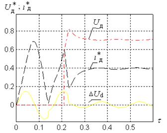 Для получения обобщающих закономерностей, применимых для класса дуговых печей различной мощности, в работе предложено использовать систему относительных величин, в которой за базовое время принято частота питающей сети, за базовое напряжение номинальное значение выпрямленного напряжения, а за базовый ток – номинальный ток печи.