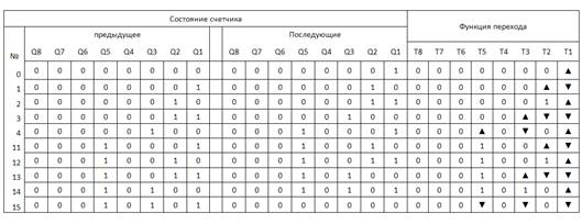 Составление таблицы функционирования счётчика и определение функций переходов