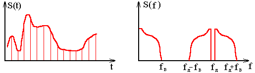 Полученный выхода АЦП сигнал поступает на вход Амплитудного модулятора, где последовательность двоичных импульсов преобразуется в радиоимпульсы, которые поступают непосредственно в канал связи.