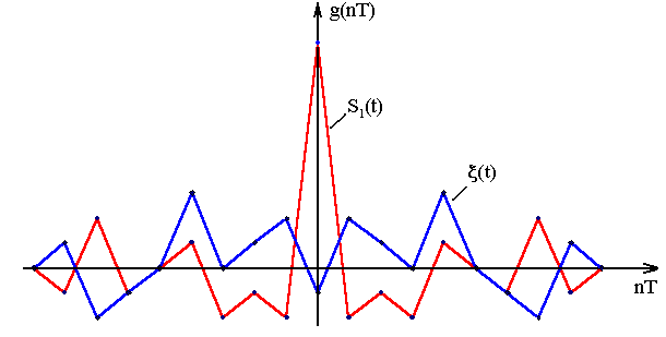 Рассчитаем форму помехи в предположении. Что на вход фильтра поступает непрерывная последовательность знакопеременных символов {-1;1;-1;1;-1;1;-1;1;-1}.