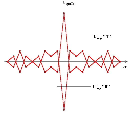 При определении вероятности ошибки считаем, что сигналы соответствующие символам “1” и “0”, являются взаимнопротивоположными и решение о переданном символе принимается с использованием пороговой решающей схемы синхронным способом.