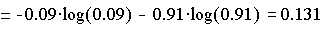 Вычислим энтропию двоичного источника сообщений, передаваемых по дискретному каналу связи с априорными вероятностями Р(1)=0.09 и Р.(0)=0.91, и производительностью этого источника: