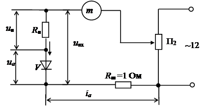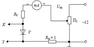 5) в начале каждого опыта, изменяя напряжения и токи в допустимых пределах, качественно оценить характер зависимости, а затем произвести требуемые измерения. При снятии характеристик надо обязательно снять крайние точки. Наибольшее число измерений следует производить на участках резкого изменения наклона характеристик, а на линейных участках независимо от их протяженности достаточно снимать по три точки. Характеристики строятся непосредственно во время проведения эксперимента;