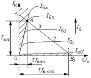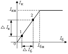 Построить характеристику Iк = B(Iб ) при Rк = const. По ней найти токи насыщения базы и коллектора, а также коэффициент усиления тока. Определение этих величин по характеристике показано на рис.13.
