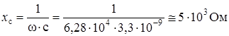 Пусть частота сигнала 104 Гц, емкость конденсатора 3,3 нФ, тогда
