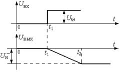 Работа интегрирующего усилителя для скачка входного напряжения приведена на рис.2.