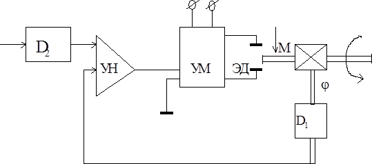 В ходе выполнения курсовой работы нужно спроектировать систему автоматического регулирования угла поворота вала электродвигателя (ЭД). Объектом управления такой системы является вращающийся вал, нагруженный моментом