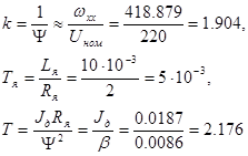 Согласно исходным данным, рассчитан исполнительный двигатель: определена требуемая мощность двигателя, по значению которой выбран тип двигателя. В процессе расчета регулятора пришли к выводу, что для обеспечения устойчивости системы и хороших показателей ее качества и точности существует необходимость введения корректирующего звена, в связи с тем, что при полученных параметрах передаточной функции (коэффициенте усиления k