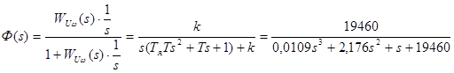 Для оценки качества и точности системы с полученным корректирующим звеном построим переходный процесс системы с коррекцией, предварительно получив передаточную функцию замкнутой системы.
