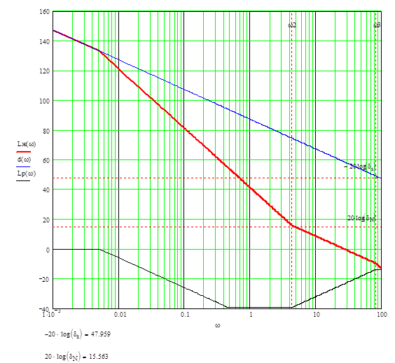 На основании предъявляемых требований к построению желаемой ЛАЧХ получим: