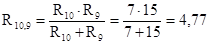 R6,7,10,9,8 = 6 + 4,77 + 4 = 14,77 Ом;