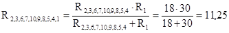 R2,3,6,7,10,9,8,5,4 = R2,3 +R6,7,10,9,8,5 +R4 ; R2,3,6,7,10,9,8,5,4 = 1,5+ 8,5 + 8 = 18 Ом;