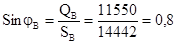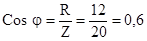 По таблицам тригонометрических величин найдем значение угла сдвига фаз: φ = 53,1°;