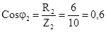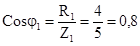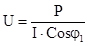 Из формулы Р=U∙I∙Cos φ1 определим напряжение, приложенное к цепи U: