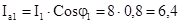 По формуле P = S · Cos φ определим активную мощность цепи: