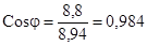 S = U∙I = 40∙8,94 = 357,6 ВА;