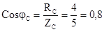 2. По закону Ома для цепи переменного тока определим полное сопротивление ZС :