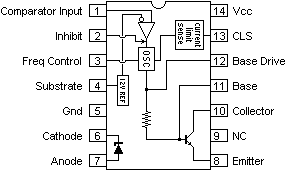 TL497 имеет генератор с фиксированным временем включенного состояния, но с переменной выходной частотой. Это дает минимальное количество навесных элементов. Время включенного состояния определяется значением емкости конденсатора, подключенного между выводом 3 и землей.