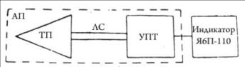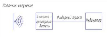 При измерении ППЭ, антенна-преобразователь помещается в зону действия ЭМП. Сигнал с антенны, через фидерный тракт, поступает на индикатор прибора. Структурная схема представлена на рис. 2.1.